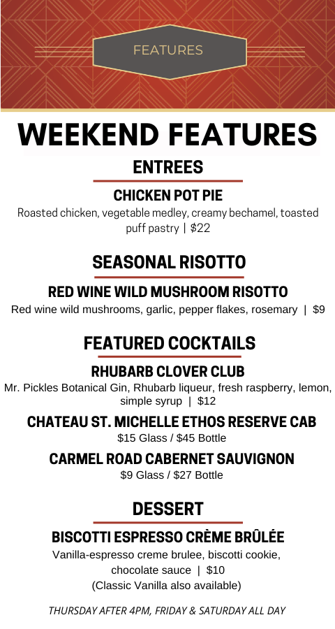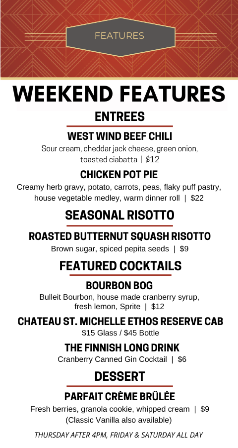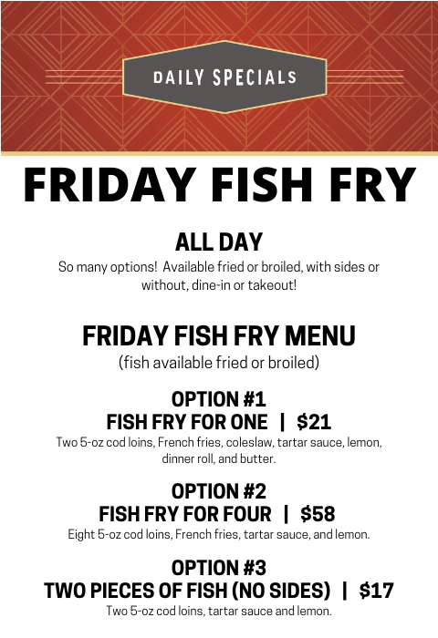 Check out our daily specials! Any allergy concerns can be accommodated. Contact us with your questions. We are happy to serve you!